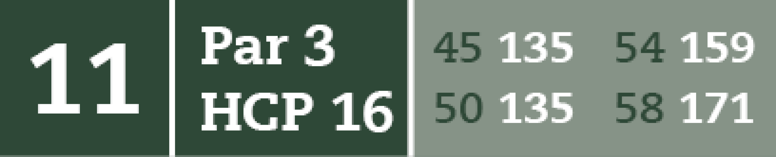 Det længste par 3 hul, men alligevel relativt nemt. Der er ikke strafområde af nogen betydning langs fairway. Eneste hindring er et æbletræ i venstre side af fairway, cirka 30 meter før green.