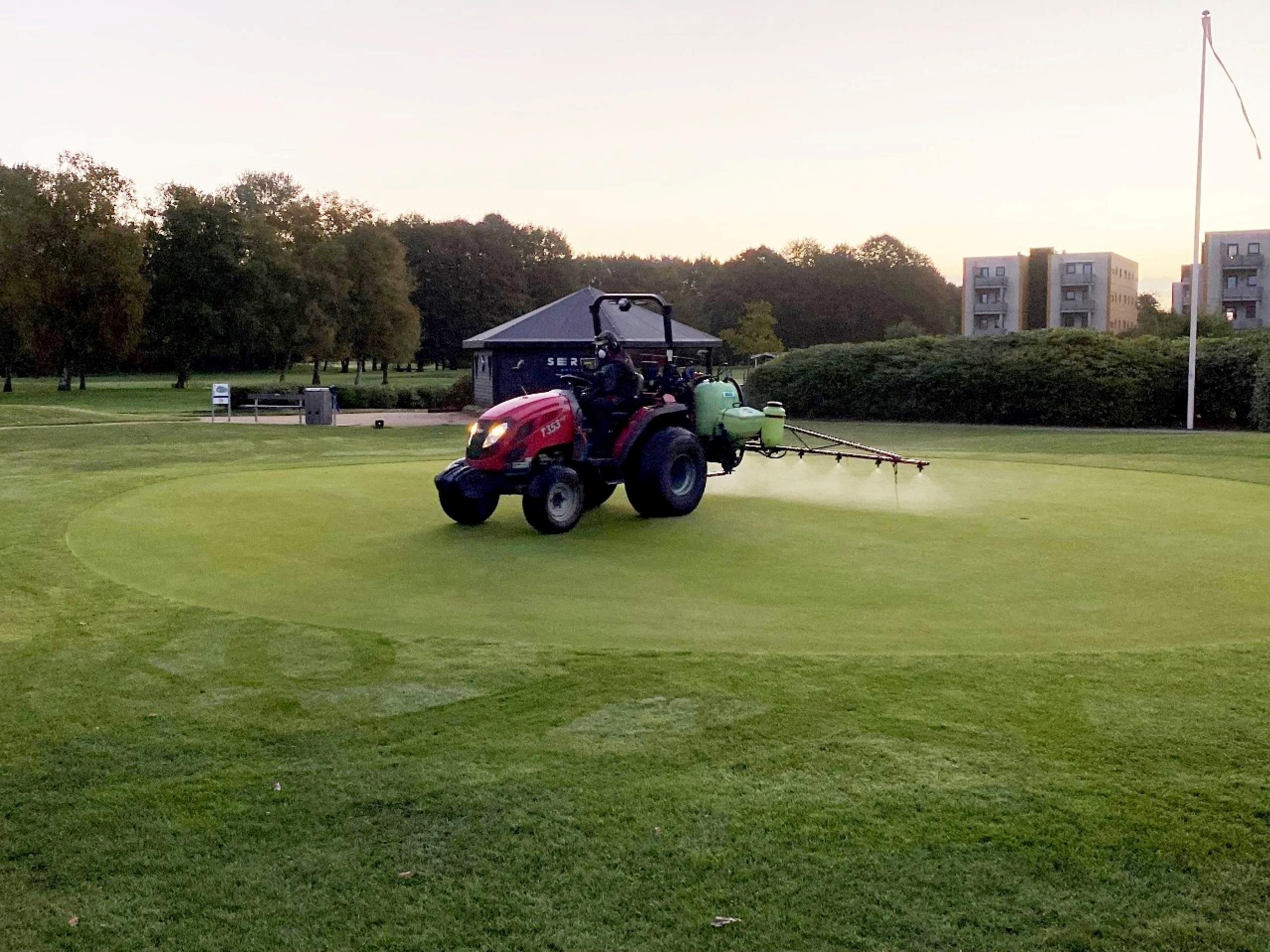Fairway sprøjtes mod ukrudt/bellis, hvilket ikke kun vil fjerne en del af ukrudt/bellis, men også styrke græsset. Samtidig er der givet afspænding, hvilket vil reducere tørkepletter og sikrer bedre vandgennemtrængning på Fairway.