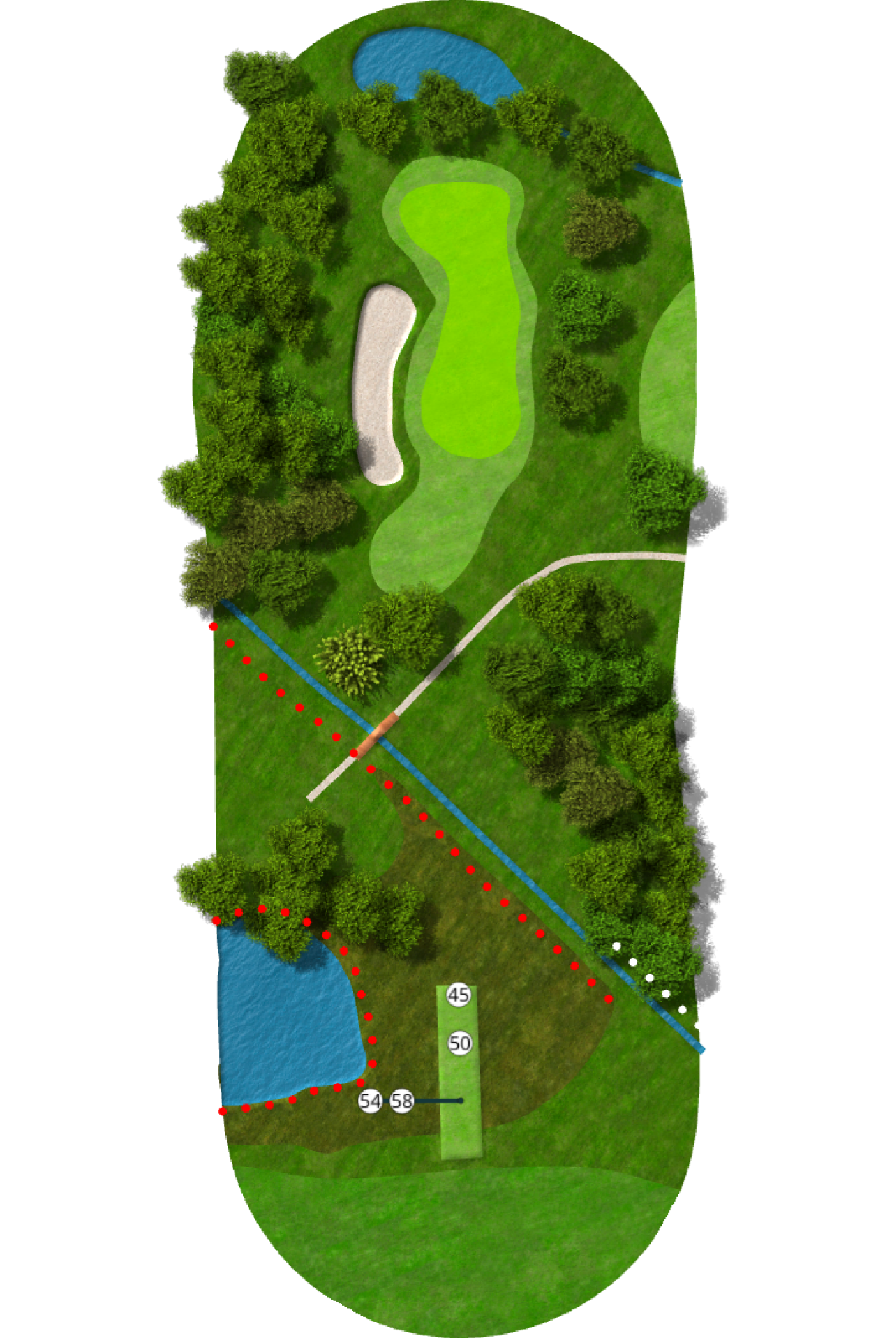 Der skal ikke anvendes for meget kraft og pas på med spin, da man hurtigt ruller ud af green igen.