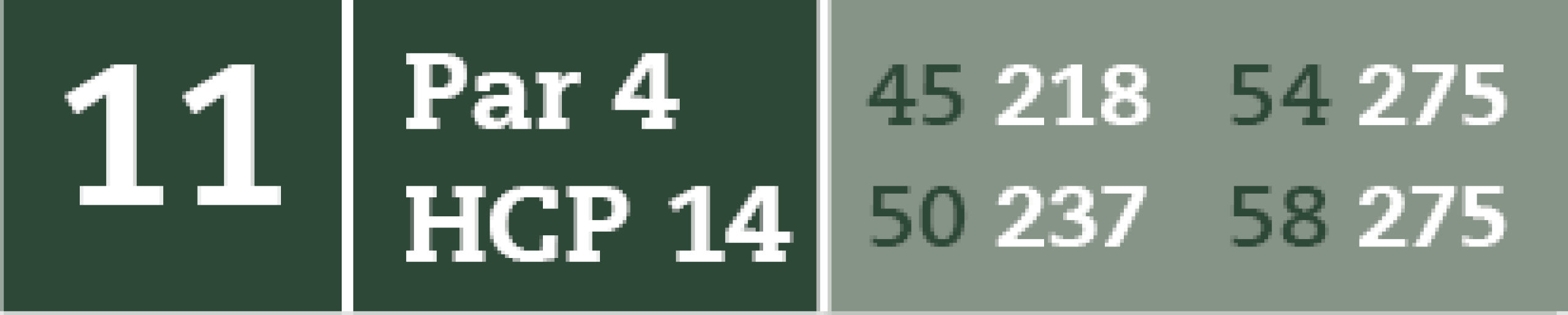Green er hævet med cirka 2 meter og til højre godt beskyttet af en sø, som er en rigtig boldsluger. Bag green er der out of bounds! Tilsammen resulterer det i et svært hul, hvor man skal være glad for sin par.