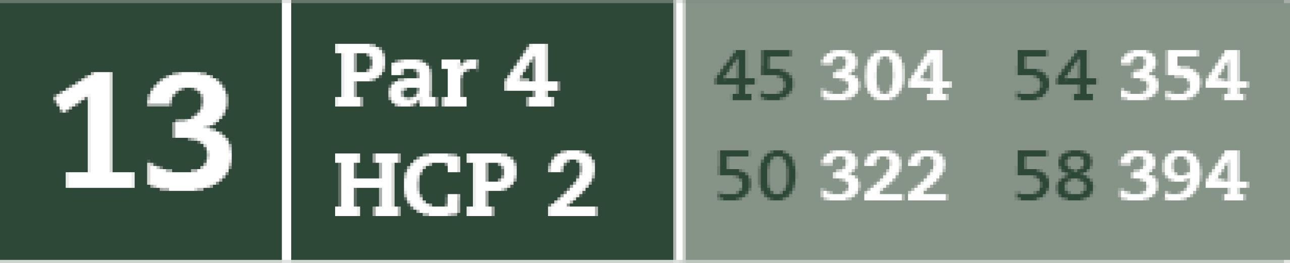 Hul 13 er et langt par 4 hul, som i virkeligheden spilles endnu længere i kraft af en forhøjet green.