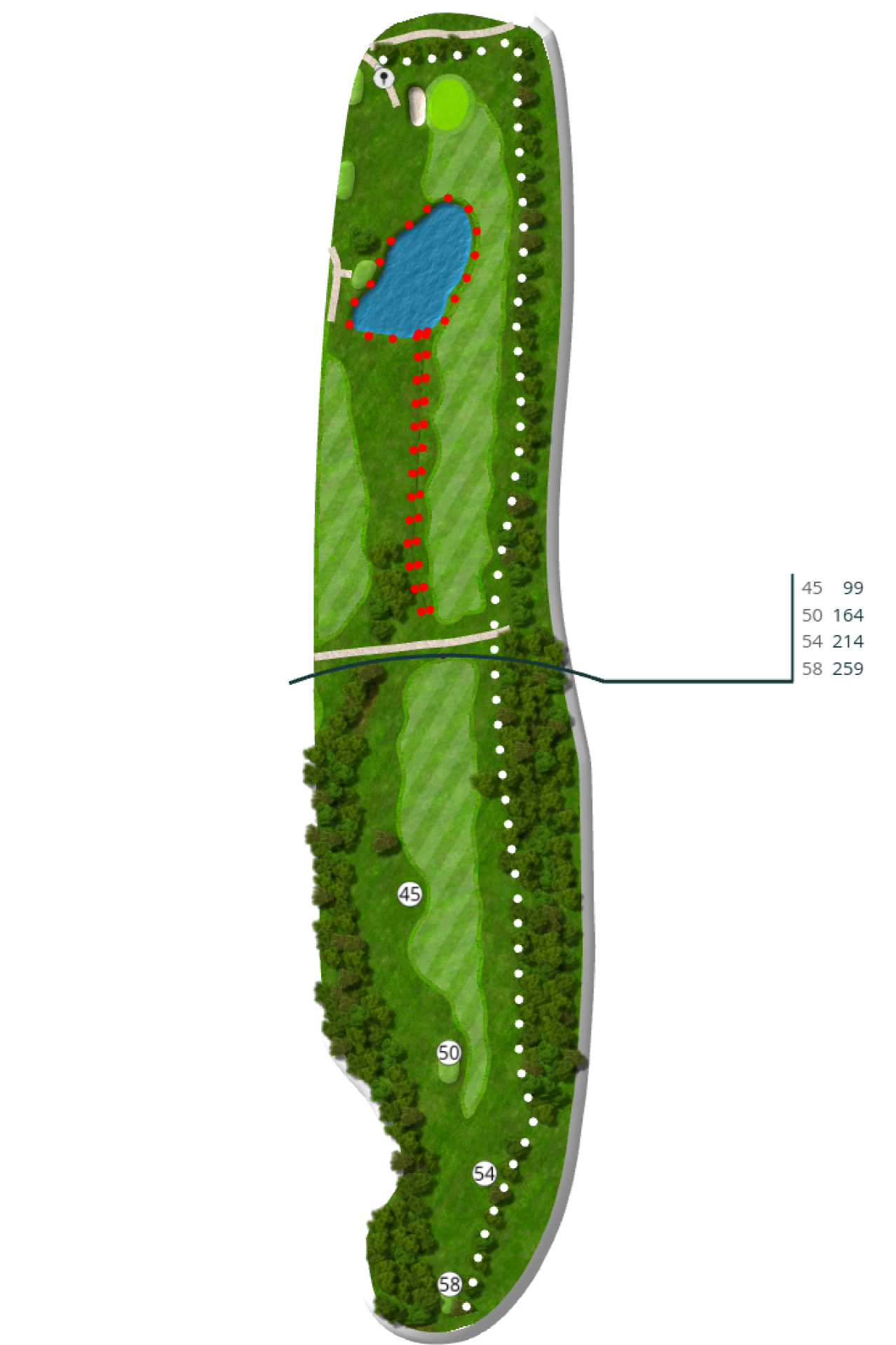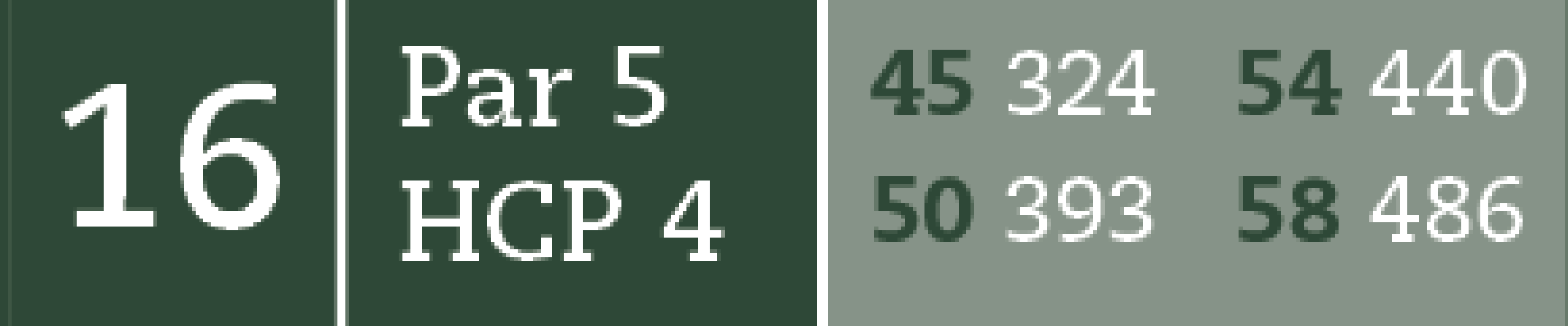 Hul 16 er et middellangt par 5 hul og med relativ snæver fairway. Der er out of bounds hele vejen langs højre, så et halvforsigtigt drive er på sin plads.