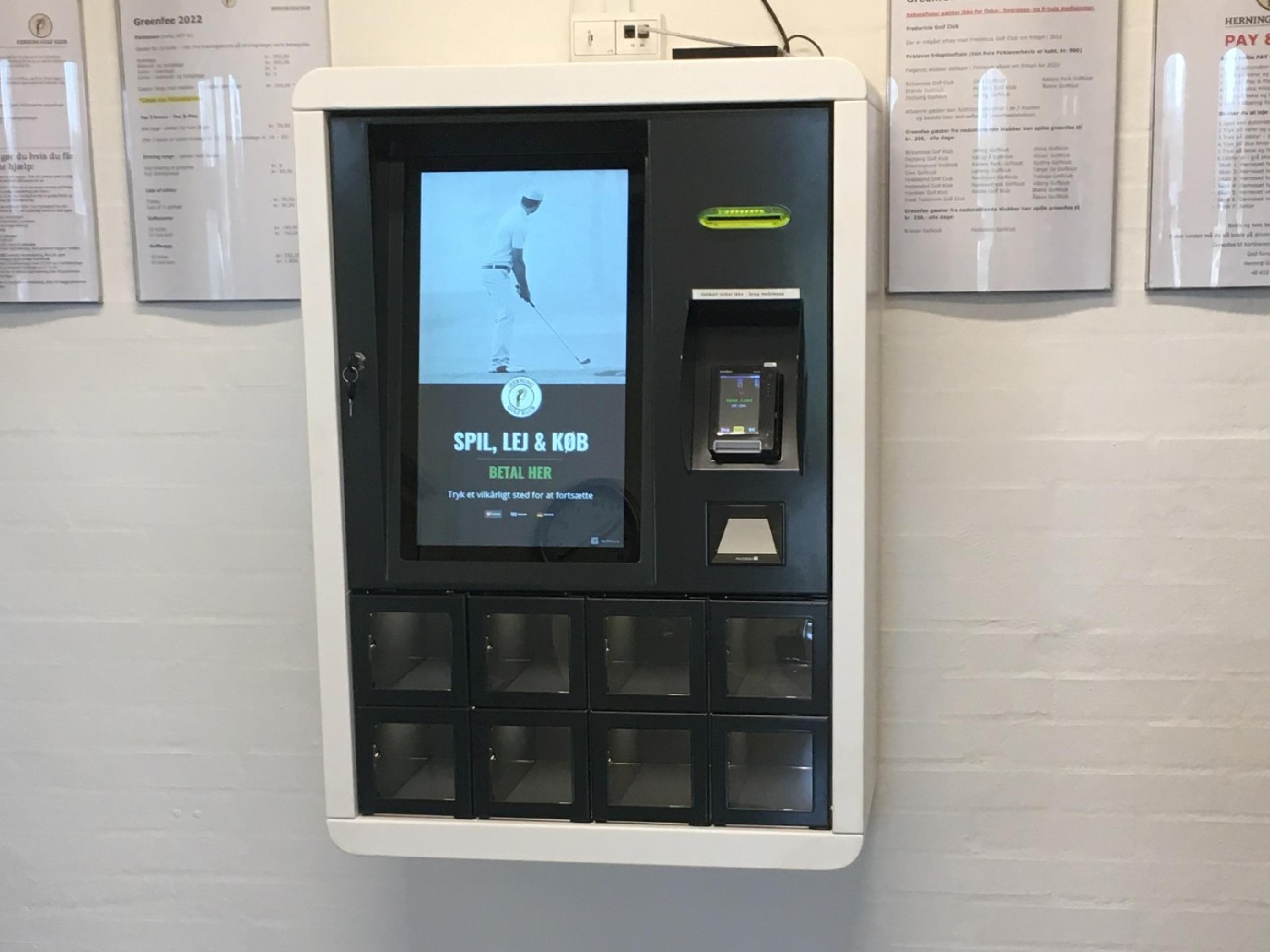 Nøgler ligger i rum i greenfeeautomaten, hvor der også betales greenfee.
