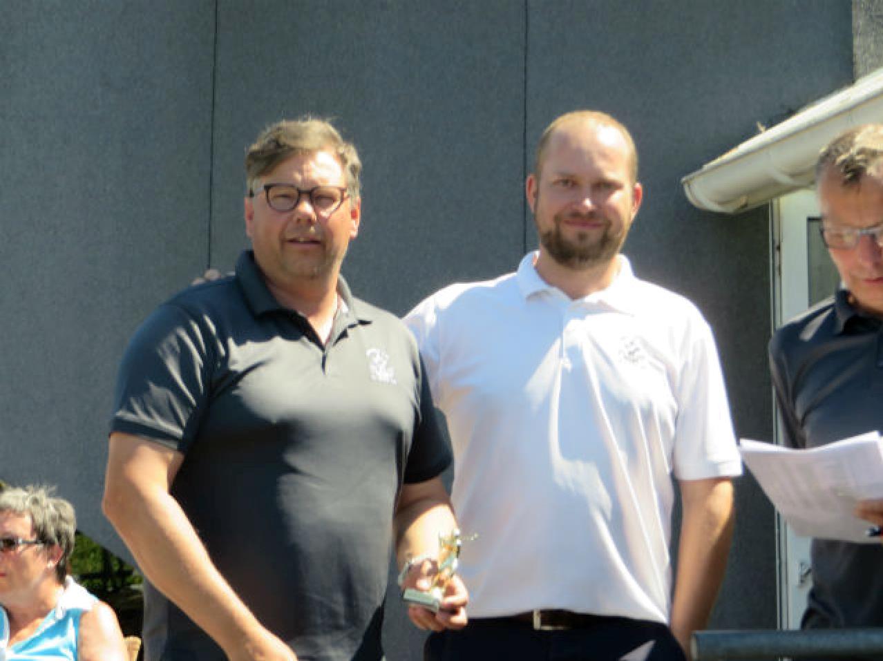Efter fantastiske golfrunder i godt vejr hjemme i Herning bød Lars Ole og Jacob alle rødder velkommen til præmie overrækkelsen på terrassen.
