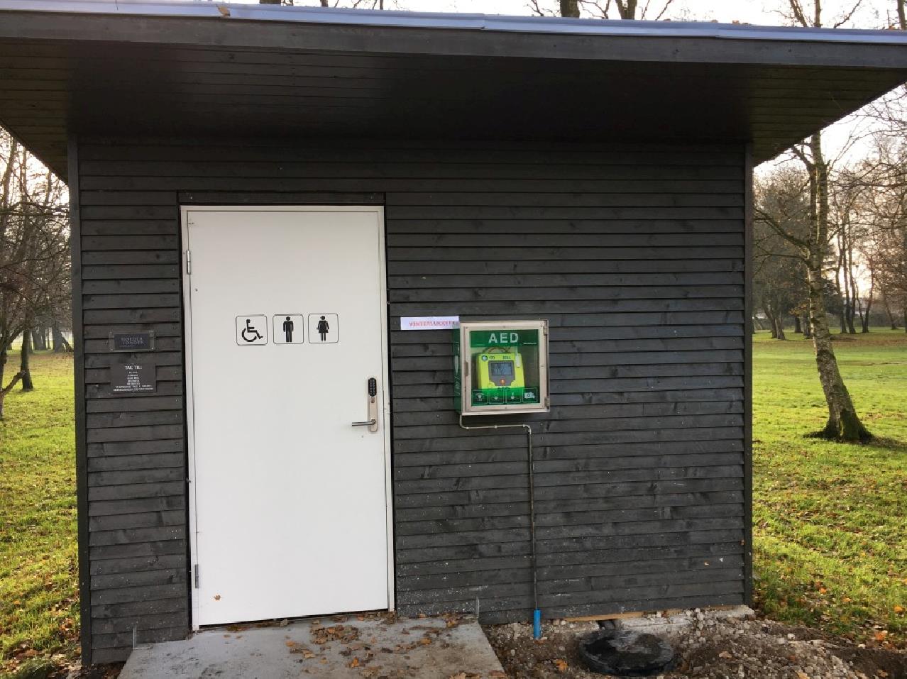 På banen findes der en hjertestarter ved toilettet mellem 4. og 17. teested (se her).