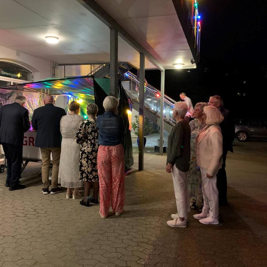 Aftenen sluttede officielt af med at der blev serveret selvlavede hotdogs fra en til lejligheden indhyret pølsevogn.