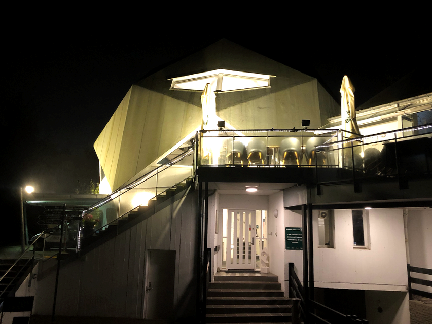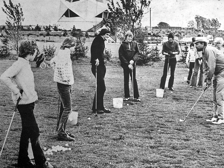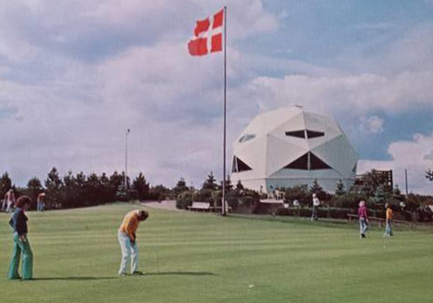 I 1970 var kuplen hvid og meget synlig, da der endnu ikke var butikscenter, Bilka og høje træer omkring golfklubben.