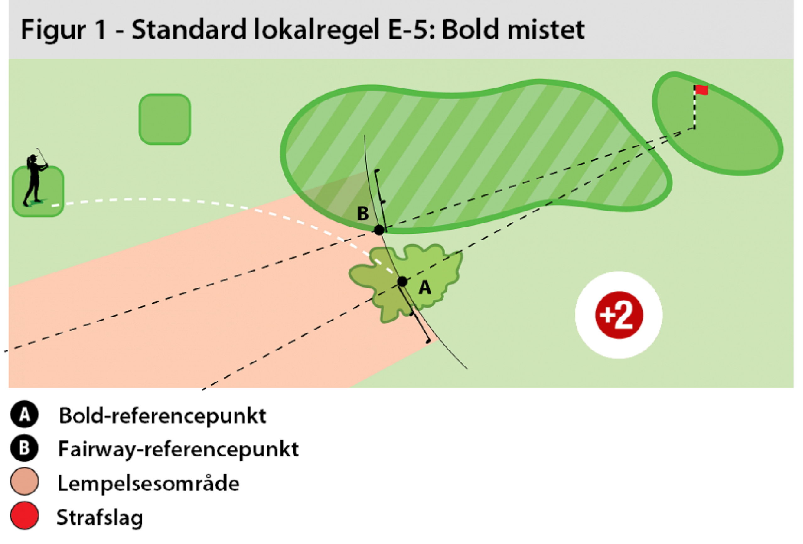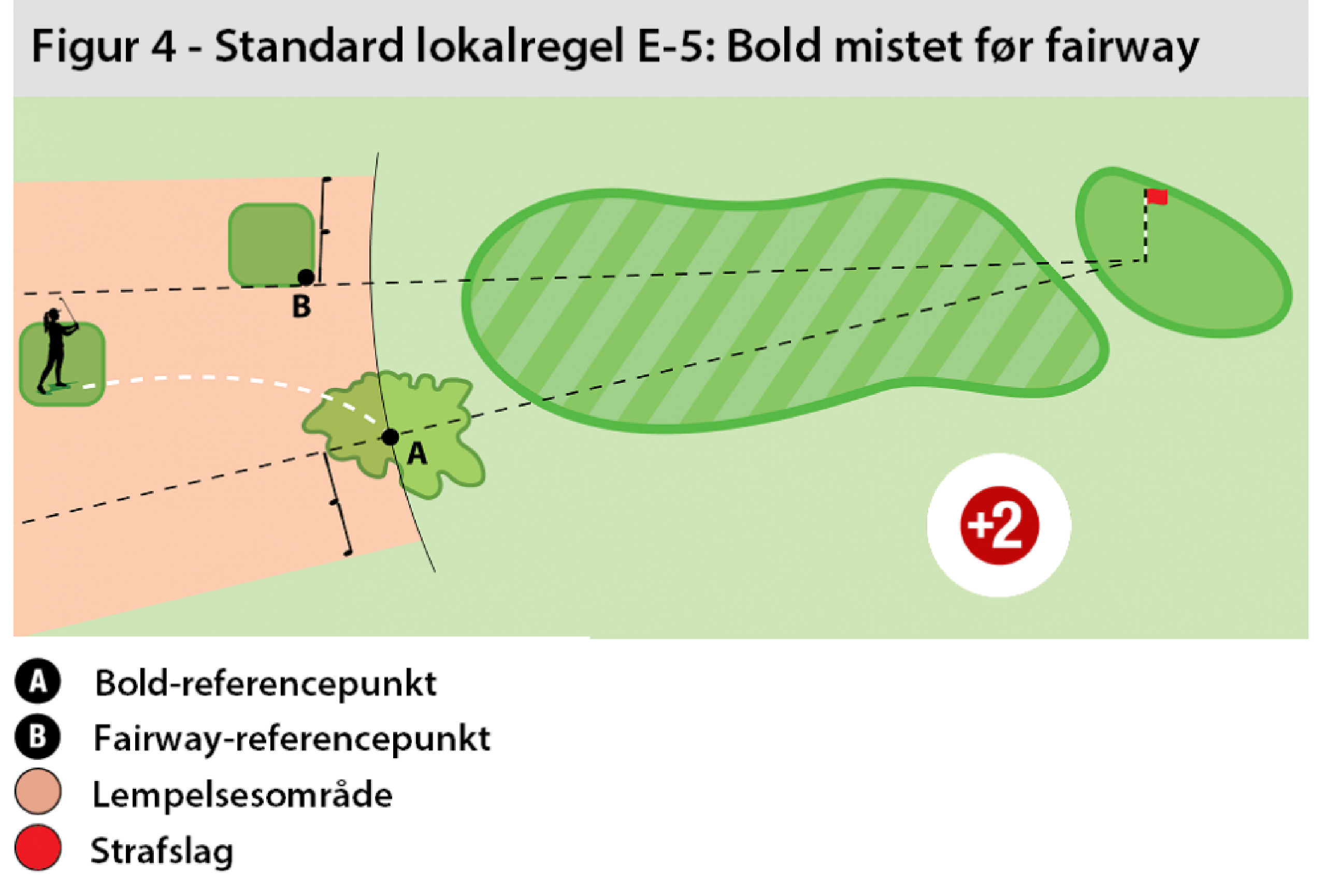 Hvis en bold skønnes at være mistet på banen, eller senest krydsede banens ydre grænse før begyndelsen af fairwayen, kan fairway-referencepunktet være en græssti eller et teeområde for det hul, der spilles, som er klippet til fairwayhøjde eller lavere.