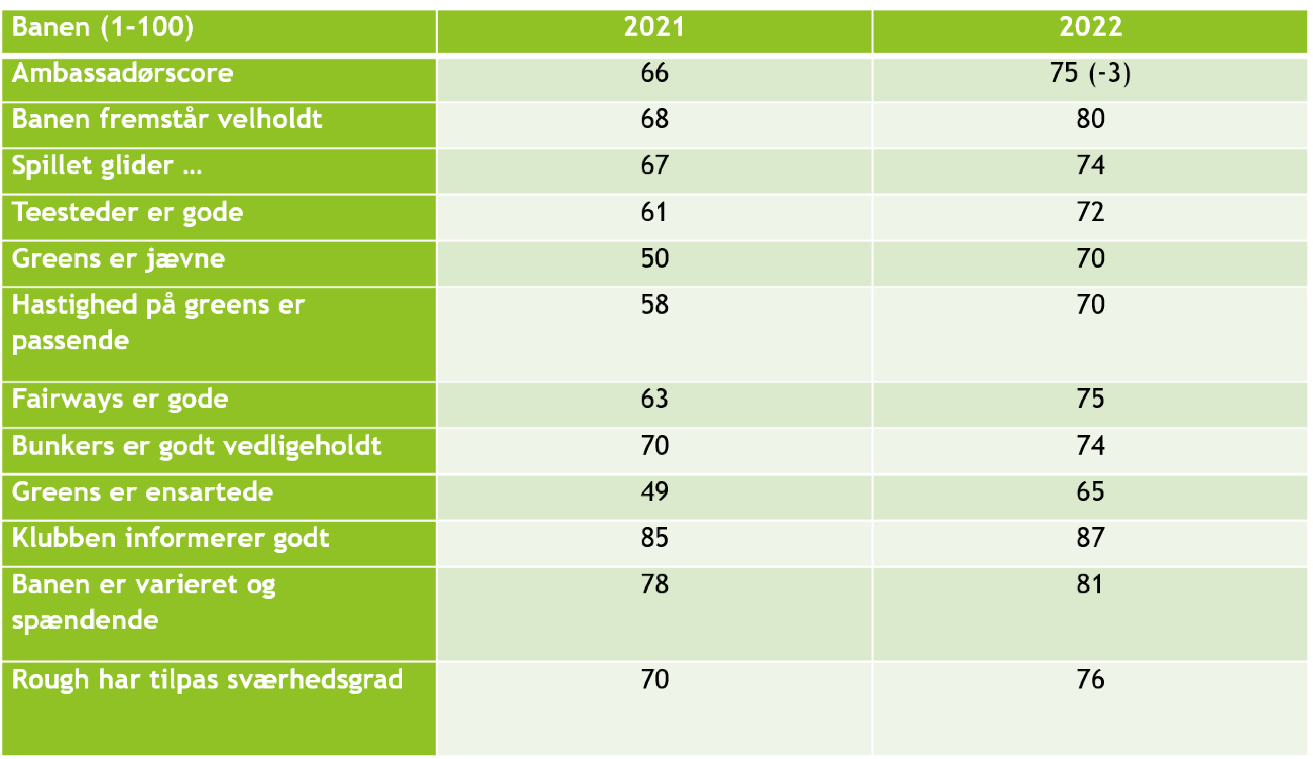 Vi er naturligvis glade for fremgangen, og sender masser af ros til greenkeeperne og de frivillige, der hjælper med mange opgaver på og omkring banen, men vi er også bevidste om, at vi kan løfte niveauet endnu mere.