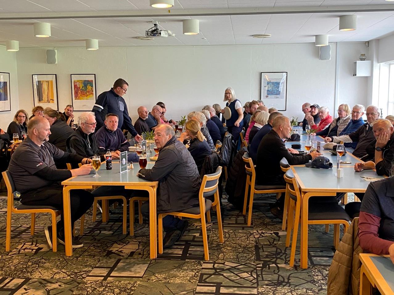 Dagen startede med en lækker brunch i golfrestauranten, hvor Bo orienterede om dagens aktivitet og at vi skulle indvie den nye funktion i GolfBox, hvor man skal indtaste scores i appen med markørgodkendelse - spændende at se, hvordan det ville forløbe. Der var dog udskrevet et pap scorekort, som backup, hvis det viste sig at elektronikken gav problemer.