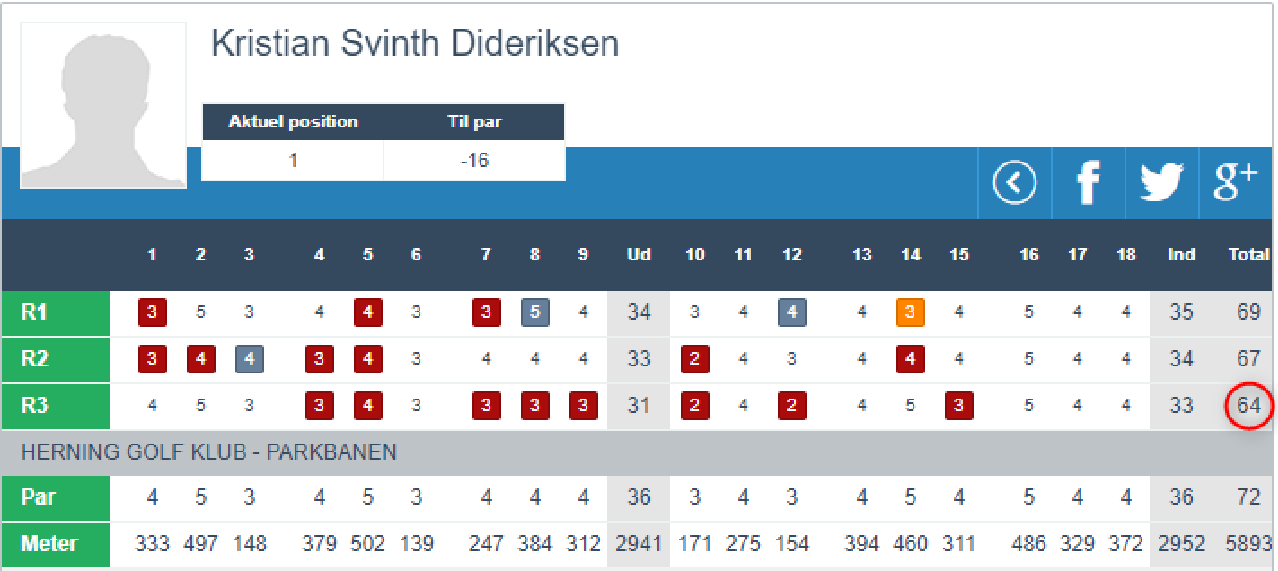 Denne succes havde han taget med til klubmesterskabet, hvor det blev til en suværen sejr med runder i 69, 67 og 64, hvor den sidste er ny banerekord. Undervejs lavede han 1 eagle, 17 birdies og kun 3 bogies. Et resultat vi ikke har set i klubben i nyere tid (eller nogensinde 😎)